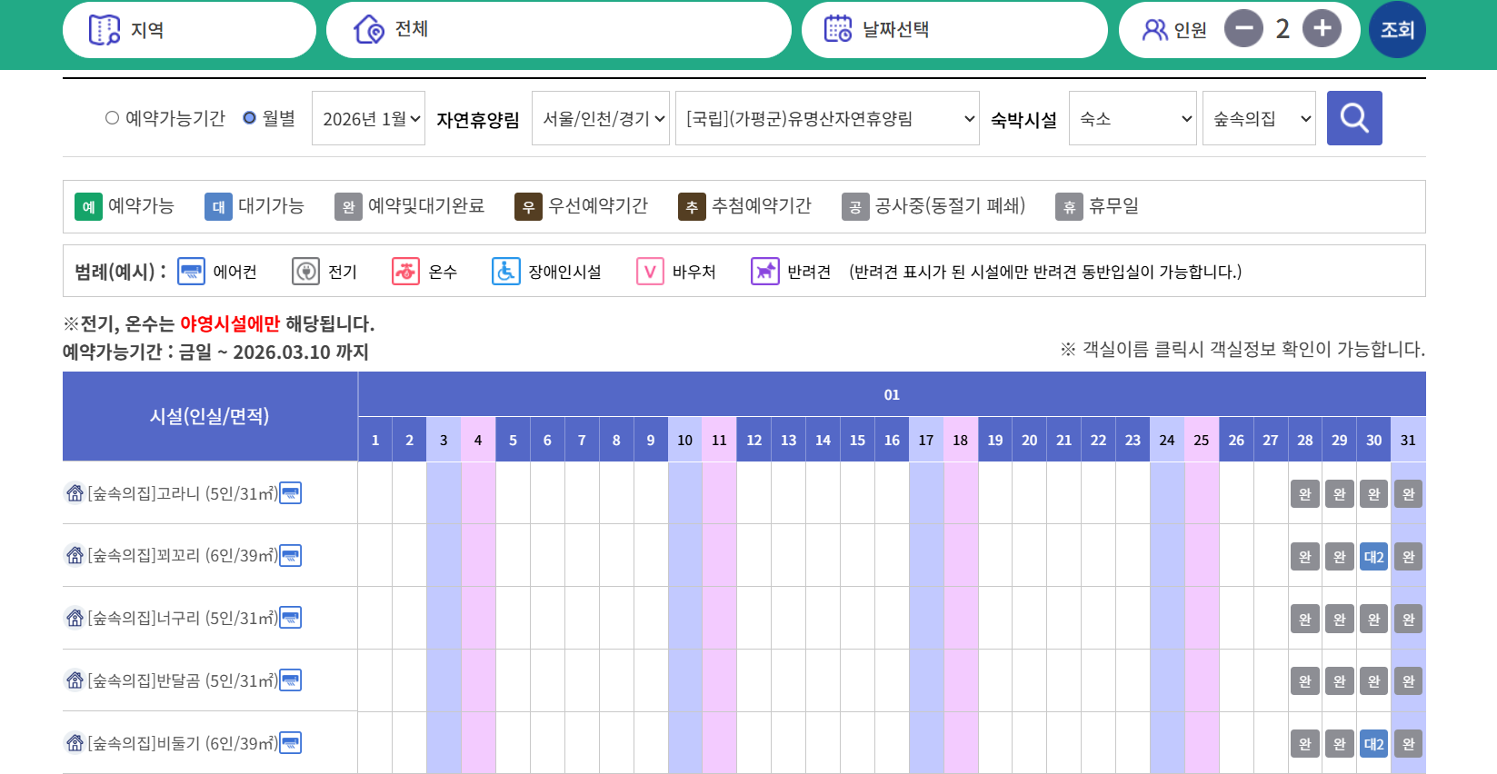- 3️⃣ 시설별 예약 가능 여부를 한눈에 확인 가능 (예: ‘예약가능’, ‘완’, ‘대기’ 등)